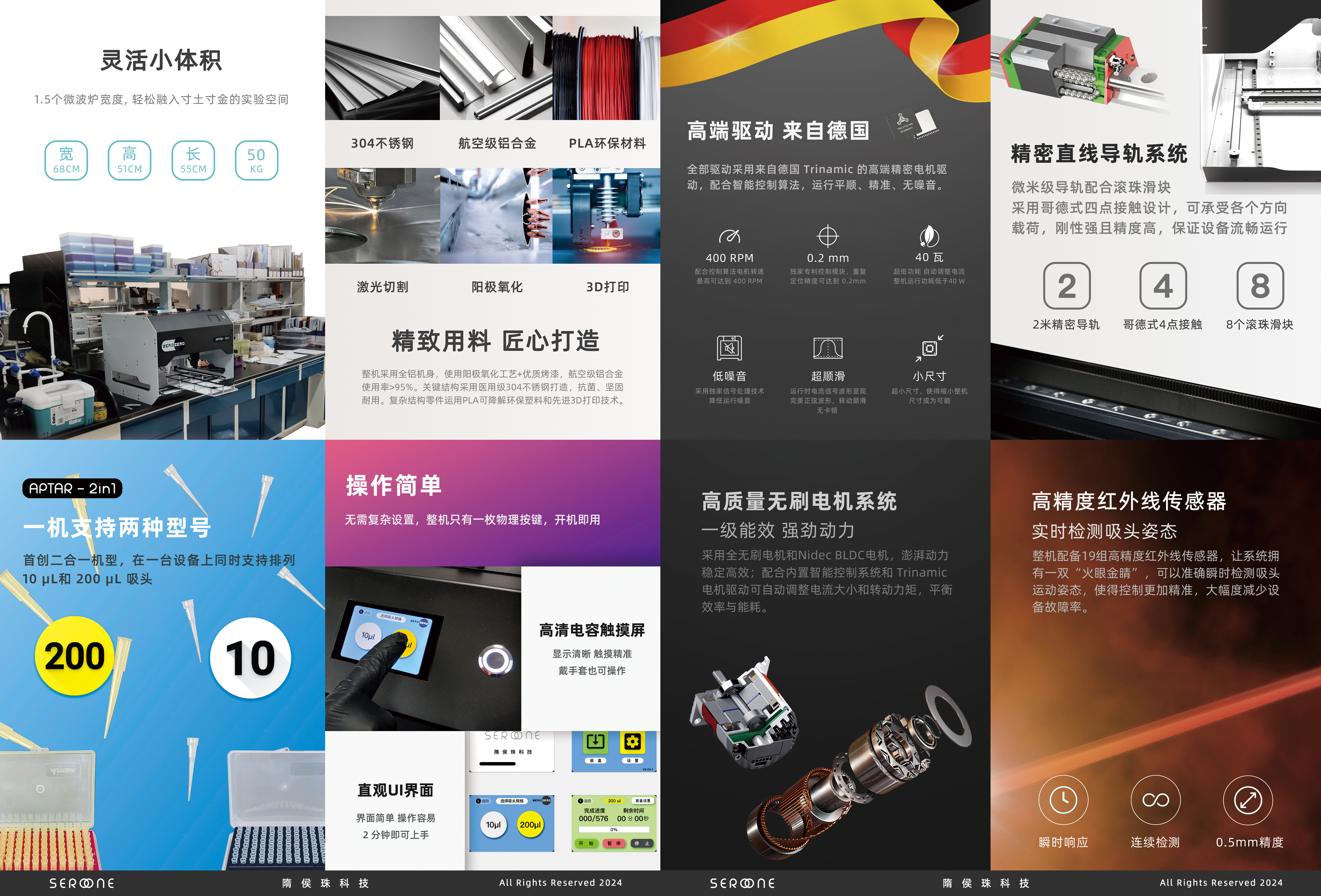 1. ✳二合一機(jī)型;在不更換硬件零件的情況下,一臺(tái)設(shè)備可同時(shí)支持排列兩種規(guī)格吸頭,標(biāo)準(zhǔn)機(jī)型為一機(jī)同時(shí)支持10ul和200ul吸頭;可支持匹配進(jìn)口、國(guó)產(chǎn)等多種品牌吸頭,支持10ul/20ul/200ul/250ul/300ul/350ul吸頭中任意兩種規(guī)格定制。
