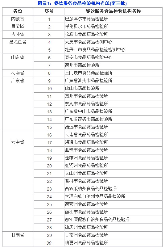 國(guó)家食藥監(jiān)局公布第三批餐飲食品檢驗(yàn)機(jī)構(gòu)名單